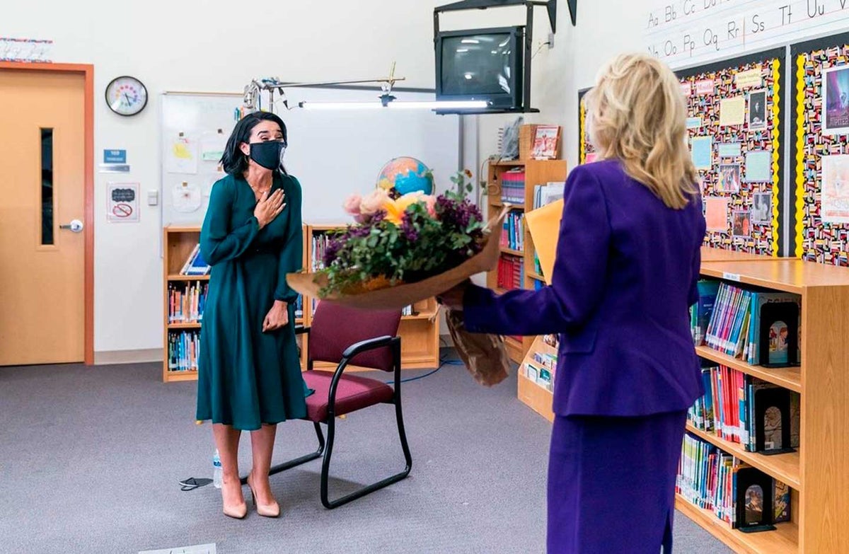 "¡Sorpresa! ¡Felicitaciones Juliana Urtubey por haber sido nombrada la Maestra Nacional del Año 2021! Estoy muy contenta de poder celebrar y honrarte en persona. Todos nosotros en la Casa Blanca te agradecemos por la alegría que les brindas a tus estudiantes, sus familias y a todos los que te han conocido», escribió Jill Biden en sus redes sociales.