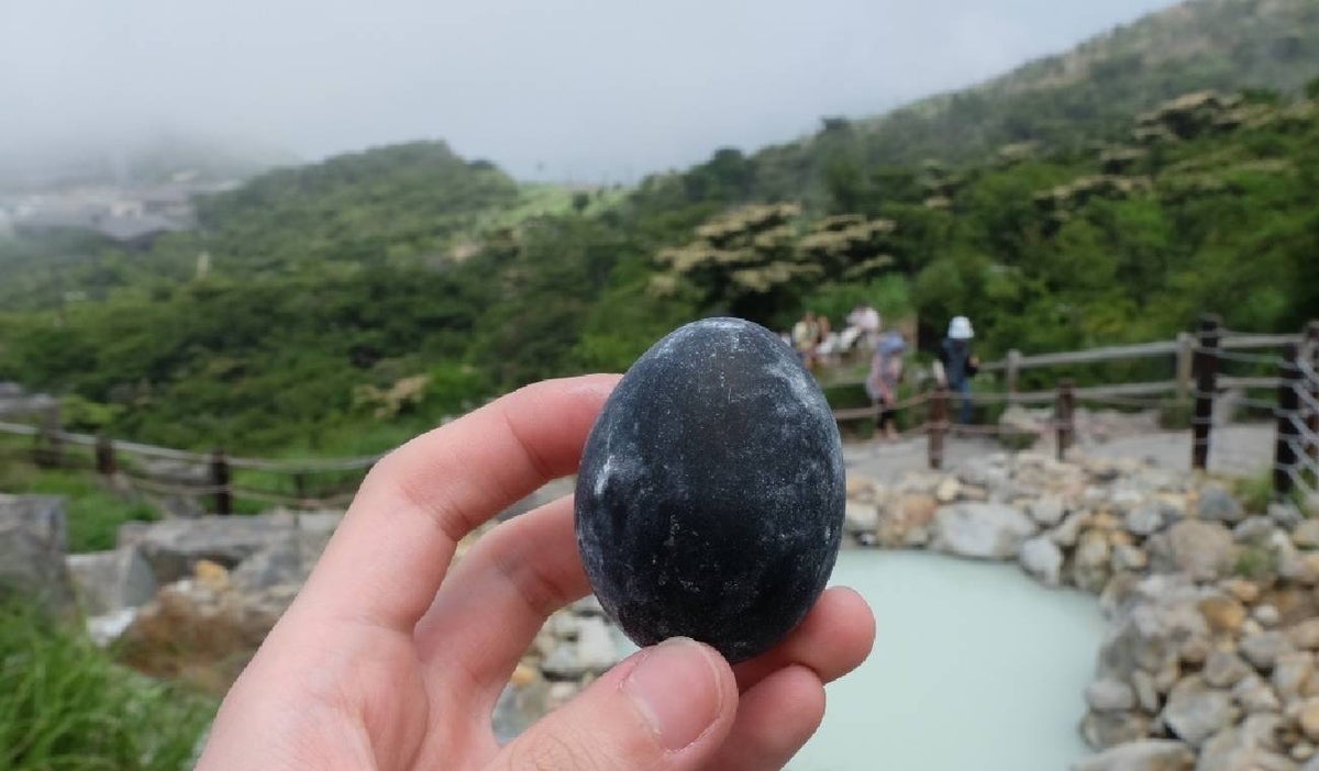 Estos famosos kuro tamago son huevos de gallina de color blaco, pero se ponen de este color oscuro cuando son hervidos en las sulfurosas aguas del Owakudani, un valle volcánico a unos 80 kilómetros de Tokio en dirección sudoeste, Japón.