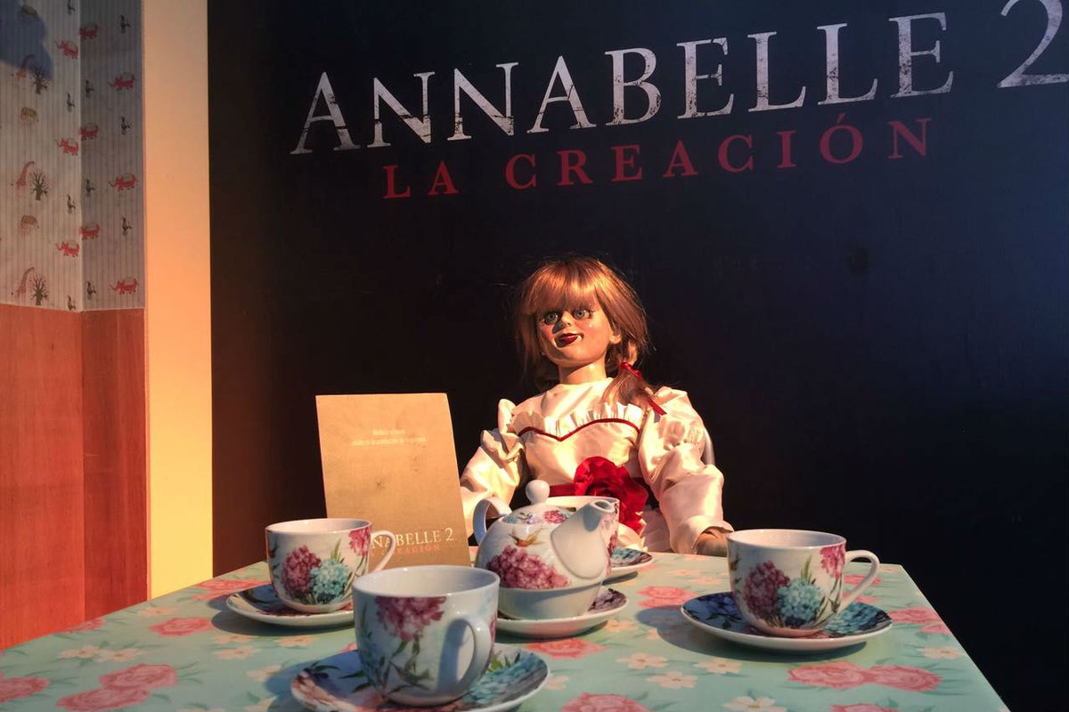 Johana Moreno, coordinadora de mercadeo de las películas de Warner Brothers en Colombia, explicó que en el stand podrán conocer a la muñeca Anabelle, la misma que se utilizó en los filmes. Además de recrear el escenario de la película, la mesa donde se encuentra la terrorífica muñeca tiembla cuando el espectador se sienta a su lado.