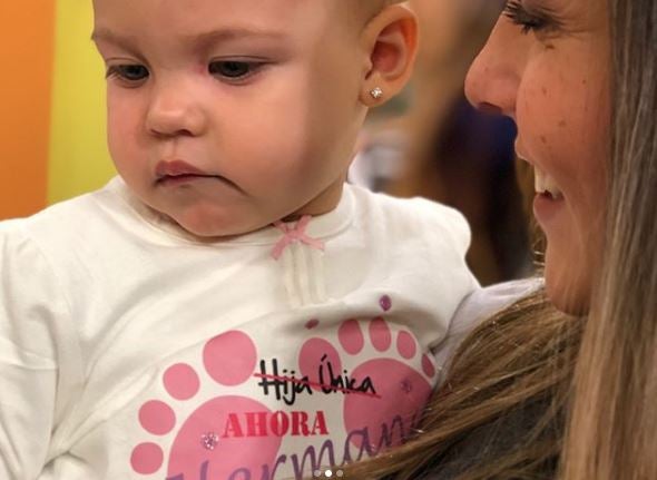 La pequeña portaba una camiseta que decía “Hija única, ahora hermana mayor”.
