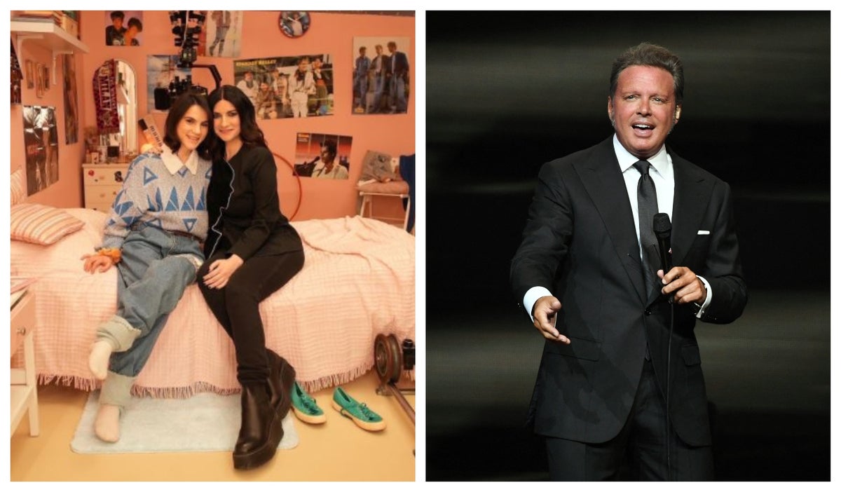 Laura Pausini en su habitación junto a la actriz que la interpreta cuando adolescente. Crédito: Instagram @laurapausini / AFP