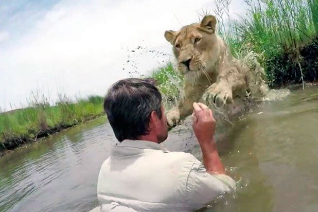 Kevin Richardson, zoólogo experto, protagonizó un video en el que recibe un inesperado acto de afecto, por parte de una leona adulta, mientras está en una charca de agua.