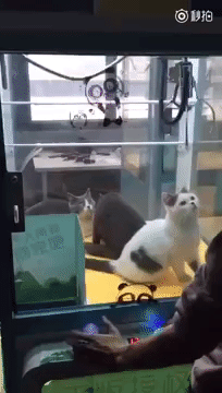 Maestro, llévame a casa”, dice una calcomanía de la máquina que fue instalada en China. De hecho en las imágenes del video se puede ver que uno los gatos está notablemente asustado.
