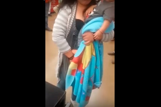 En el video se evidencia el momento en que un empleado del local intercepta a la mujer y le dice "saca lo que llevas ahí", mientras ella llevaba dos baterías para automóvil bajo la manta con la que cubría a su bebé.