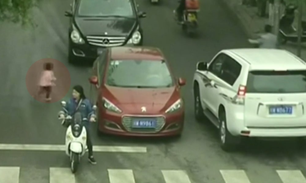Niña en China sobrevive luego de que un auto la chocara y otro le pasara encima