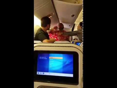 De acuerdo a las imágenes divulgadas en Youtube, sin una aparente razón un sujeto se abalanzó contra otro hombre y luego de un intercambio de golpes, una aeromoza trató de separarlos.
