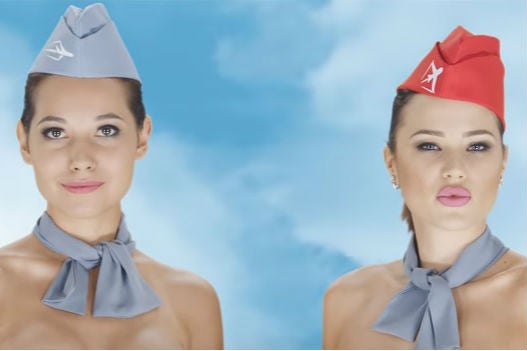 En las las imágenes se aprecia a varias jóvenes que representan a trabajadoras de diferentes aerolíneas, ofreciendo tiquetes de avión a precios económicos. Sus cuerpos parecieran estar desnudos y tan sólo son cubiertos por publicidad que les cubre los senos; la parte íntima es tapada a medida que transcurre el comercial, con un gorro que portan.
