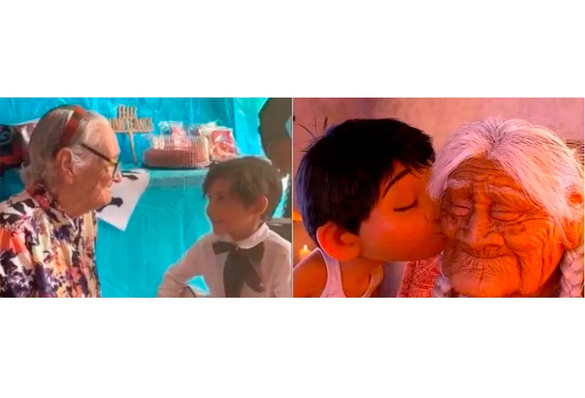 Con camisa blanca, atuendo de charro mexicano y con guitarra entre sus manos, algo que también hacía Miguel –protagonista de la cinta infantil–, el niño permaneció junto a su bisabuela y le cantó mirándola fijamente la recordada canción.