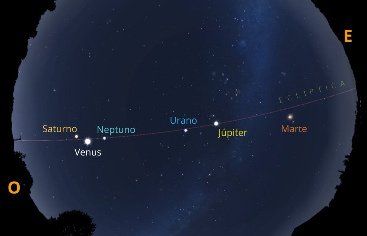 Venus, Saturno, Júpiter y Marte serán visibles a simple vista, mientras que Urano y Neptuno requerirán el uso de telescopios para ser observados.