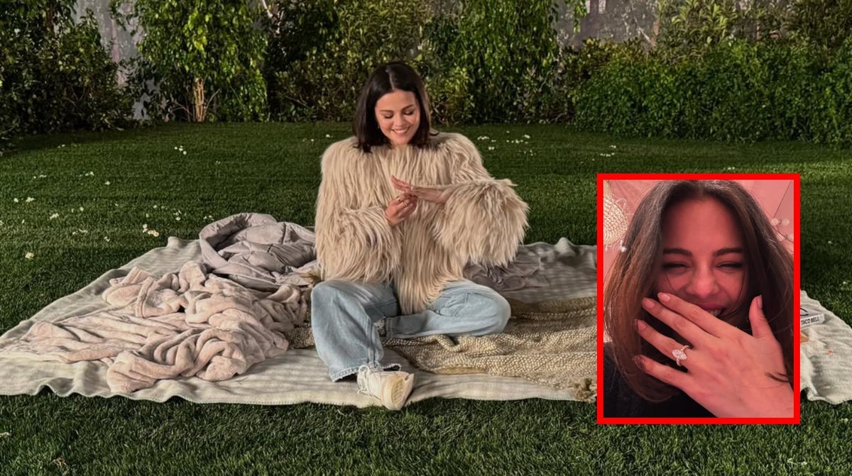 En las imágenes compartidas, Selena muestra su anillo de compromiso en un romántico escenario de picnic. En la primera foto, la cantante luce un anillo de diamantes, mientras que la última captura un emotivo abrazo entre la pareja, reflejando su felicidad.