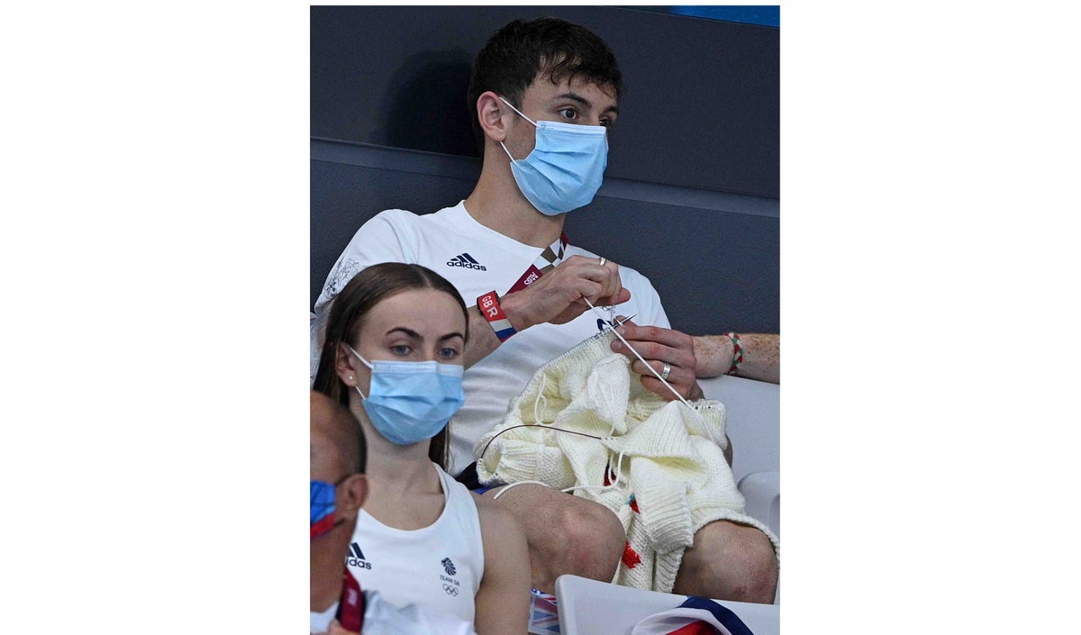 Tom Daley tejiendo en Juegos Olímpicos. Crédito: AFP