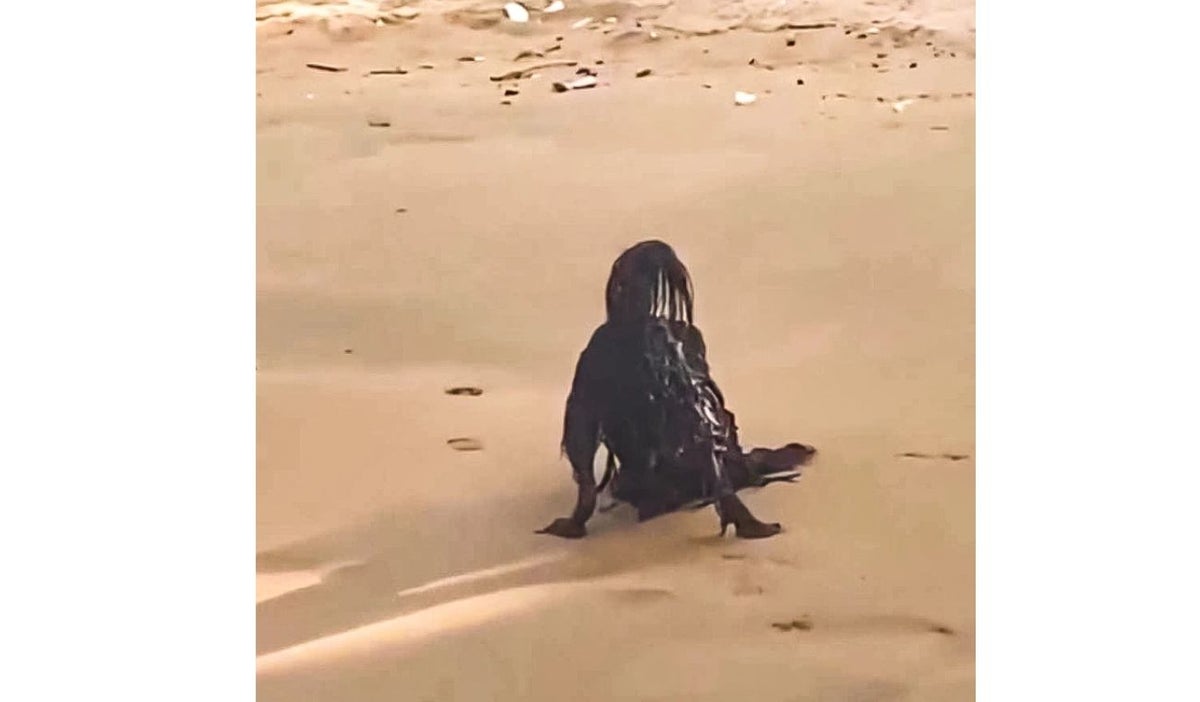 En las imágenes se puede ver una sombra negra recubierta como con una hierba larga y oscura en todo el cuerpo, parece que estuviese sentado mirando hacia el mar.
