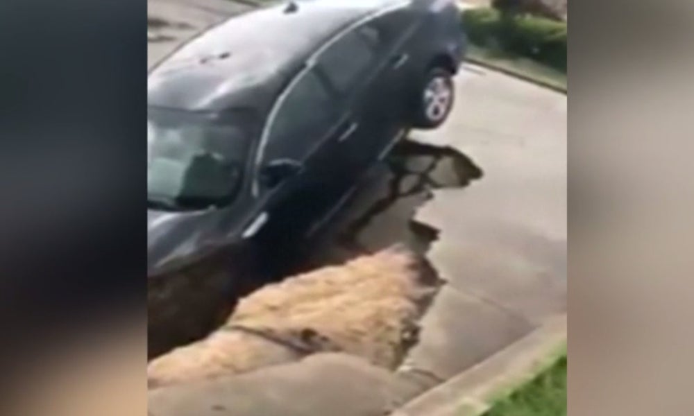 Vehículo quedó atrapado dentro de un enorme agujero de una carretera en EE.UU.