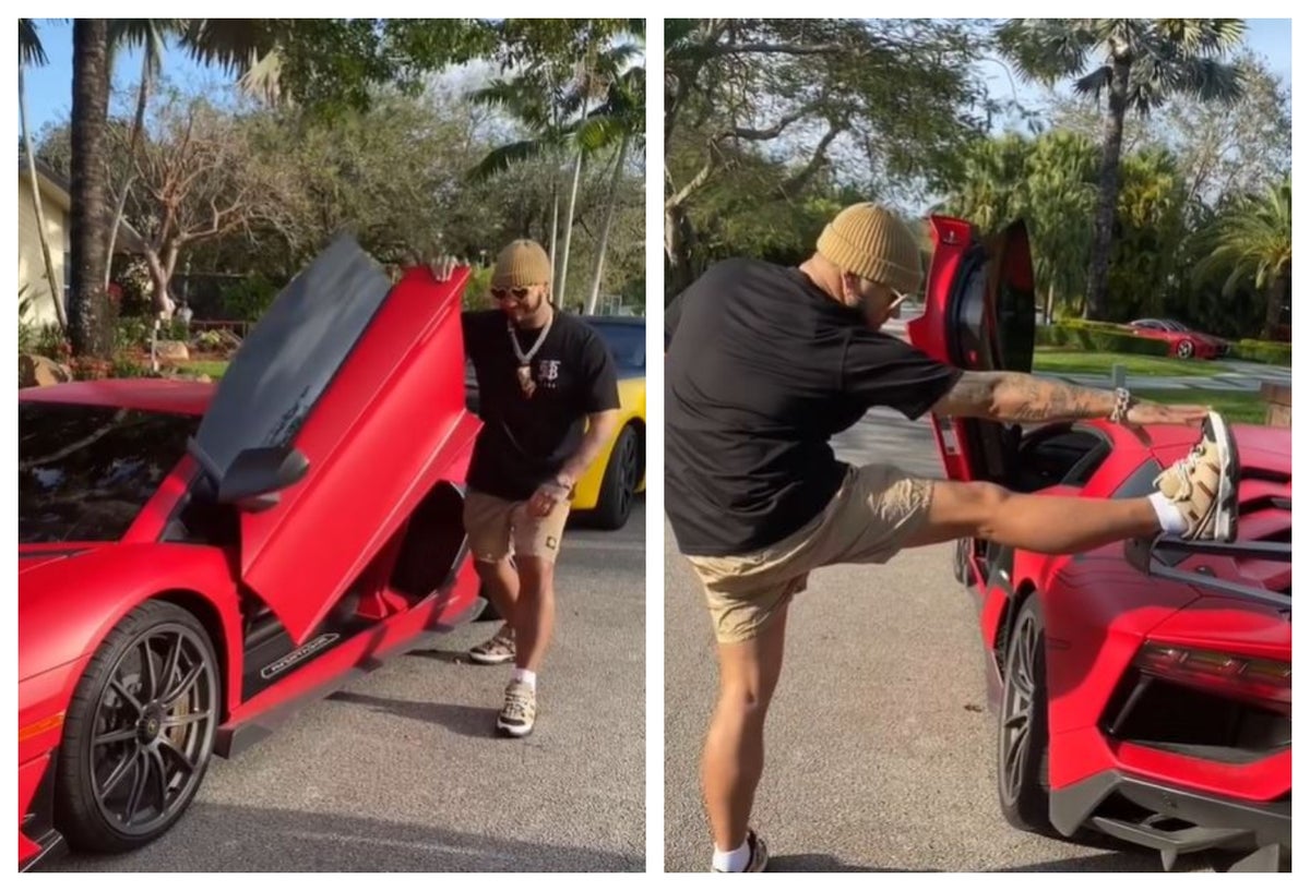 En otra toma del video, nuevamente aparece ejercitándose junto a su Lamborghini, sobre el cual decide subirse al techo para presumirlo mientras hace unas cuantas abdominales.