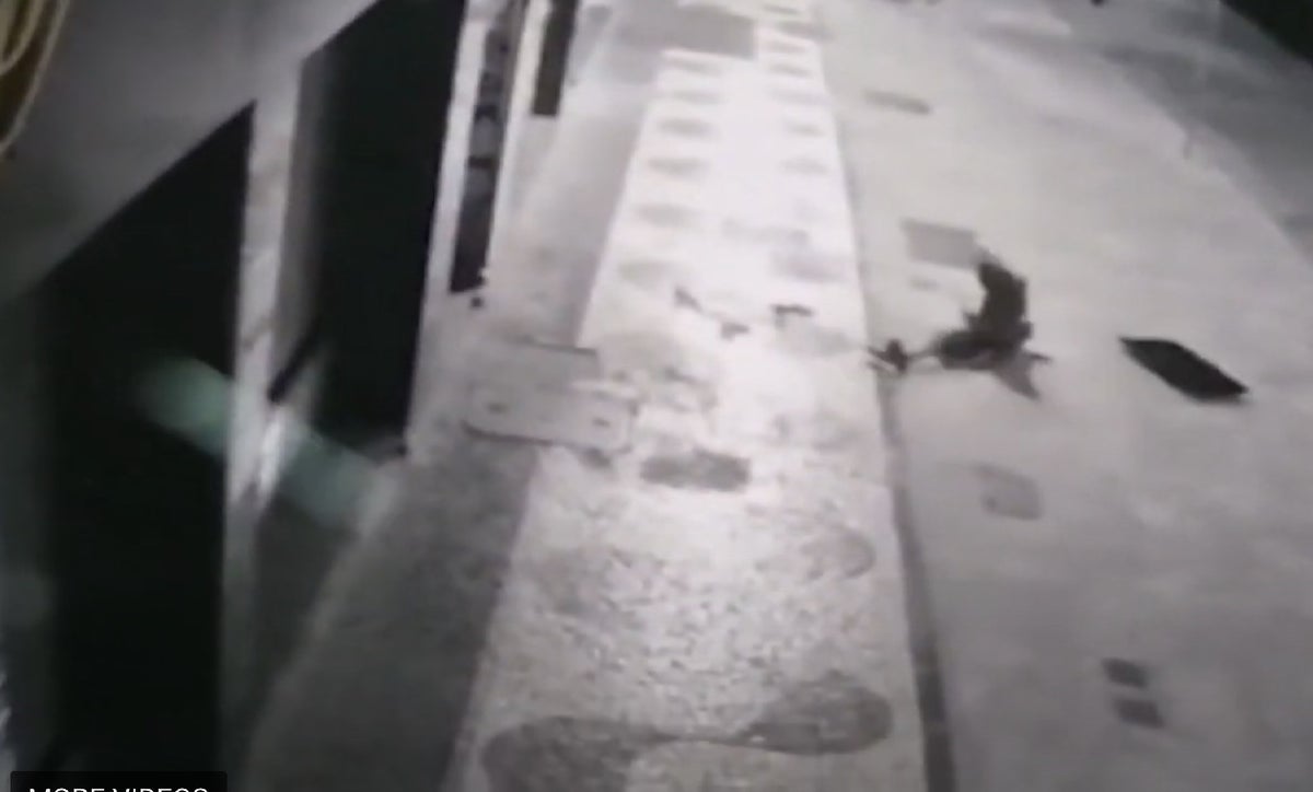 En la pieza audiovisual se puede ver cómo el hombre cae de manera aparatosa contra el suelo. Después, trató de reincorporarse y ponerse de pie, pero no veía venir lo que pasaría.