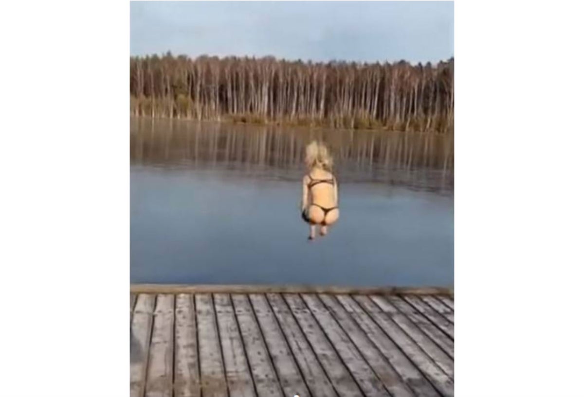 Esta situación climática en los últimos días le pasó cuenta de cobro a una joven mujer que quiso lanzarse de ‘bomba’ a un lago, sin lograr percatarse que éste permanecía congelado.