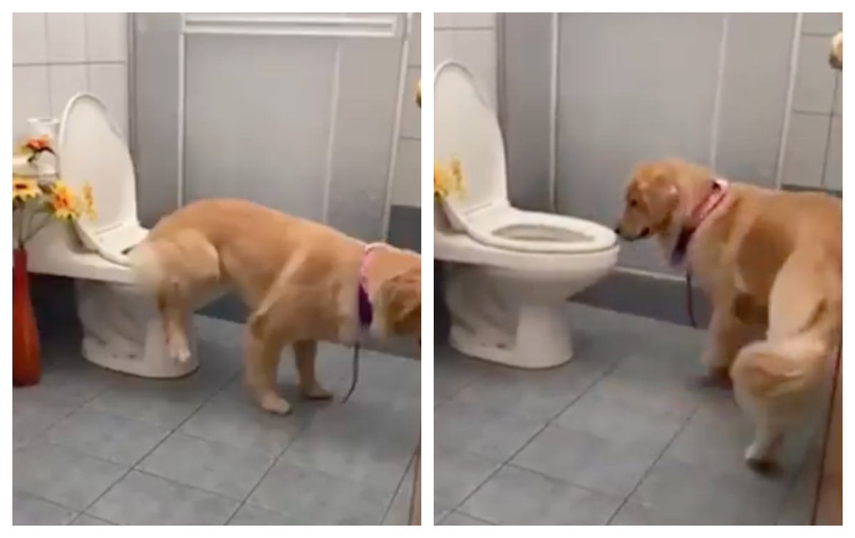 En el clip, se puede apreciar cómo el perro se apoya en sus dos patas delanteras y hace sus necesidades de manera ordenada y tranquila en la taza del baño.