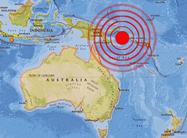 Un sismo de magnitud 7 sacudió el jueves la isla de Nueva Bretaña en Papúa Nueva Guinea, según el Servicio Geológico de Estados Unidos (USGS), por lo que se lanzó una alerta de tsunami.
