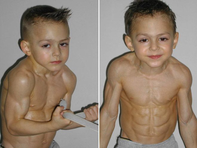 Cuando el pequeño tenía tan solo 5 años de edad, hacía las mismas acciones que su padre, por lo que en menos de cuatro meses, el menor empezó a tener un cuerpo musculoso, poco usual para un niño de su edad, pues desarrollado una musculatura atroz por la que consiguió un récord Guinness en 2009.