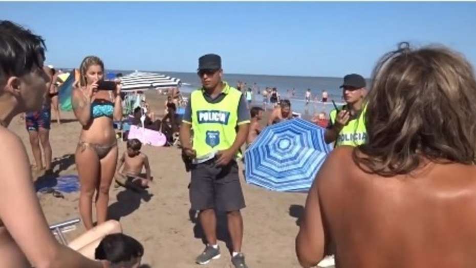 En las imágenes se aprecia cómo los agentes y las interpeladas discuten acaloradamente ante la exigencia de que se cubran si quieren seguir en la playa.