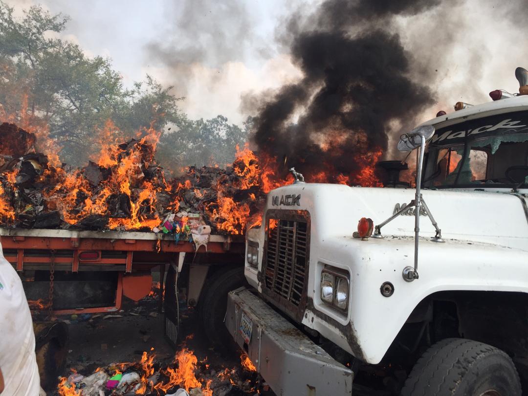 Dos camiones con ayuda humanitaria que lograron pasar la frontera colombo - venezolana, por el Puente Francisco de Paula Santander, fueron incinerados por parte de las autoridades venezolanas.