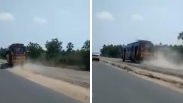 Un video pubicado en Youtube revela la peligrosa práctica que se lleva a cabo entre algunos conductores de autobuses en las autopistas de la India.