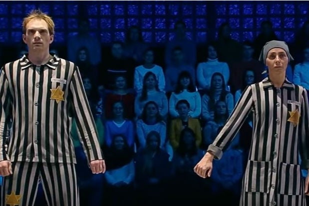 Tatiana Navka, campeona olímpica en 2006, bailó con un uniforme de rayas negras y blancas y una estrella judía amarilla junto al actor ruso Andrei Burkovsky en un programa de gran audiencia difundido el pasado sábado.