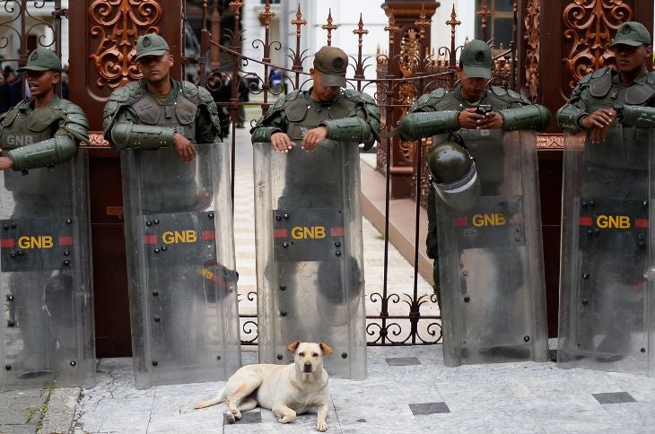 Los alrededores del Palacio Federal Legislativo fue paulatinamente tomado por fuerzas de seguridad, principalmente por la Guardia Nacional Bolivariana y su equipo antidisturbios.