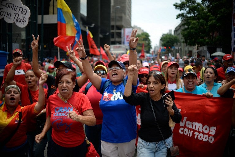 Los seguidores del gobierno se congregaron en el centro de Caracas con motivo de los 15 años del golpe de Estado que sacó brevemente del poder al presidente Hugo Chávez, fallecido en 2013.
