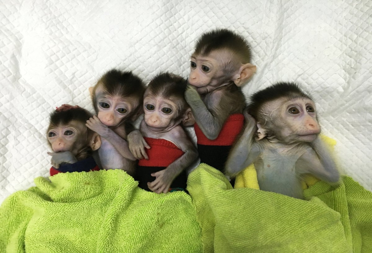 Científicos chinos anunciaron este jueves que lograron clonar cinco monos a partir de un único macaco genéticamente modificado, para padecer desórdenes del sueño, lo que podría ayudar a investigaciones sobre problemas psicológicos humanos.