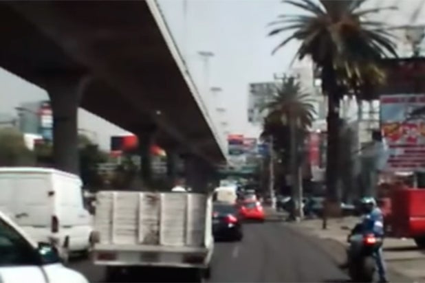 Aunque las imágenes no muestran una acción delictiva por parte de la persona en la moto, medios mexicanos informan que era una pareja de presuntos delincuentes en acción, uno robando y el otro esperándolo para escapar.