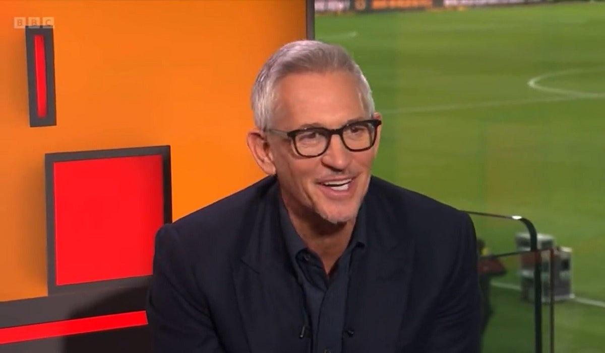 Allí, Lineker le hacía una entrevista a un personaje relacionado con el fútbol inglés y de repente algo en el estudio empezó a sonar de fondo. La cara del jugador lo decía todo.