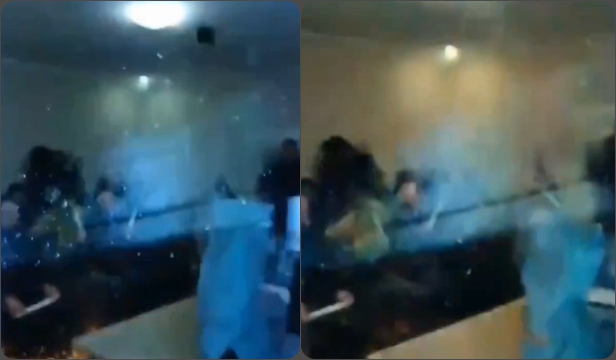 En el metraje, se observa cómo un hombre hace presencia durante algunos momentos en la sesión, se mete la mano a un bolsillo de su chaqueta y saca una granada. Algunos presentes no entienden de qué se trata. Tras la primera explosión, el sujeto lanza dos granadas más en diferentes direcciones.