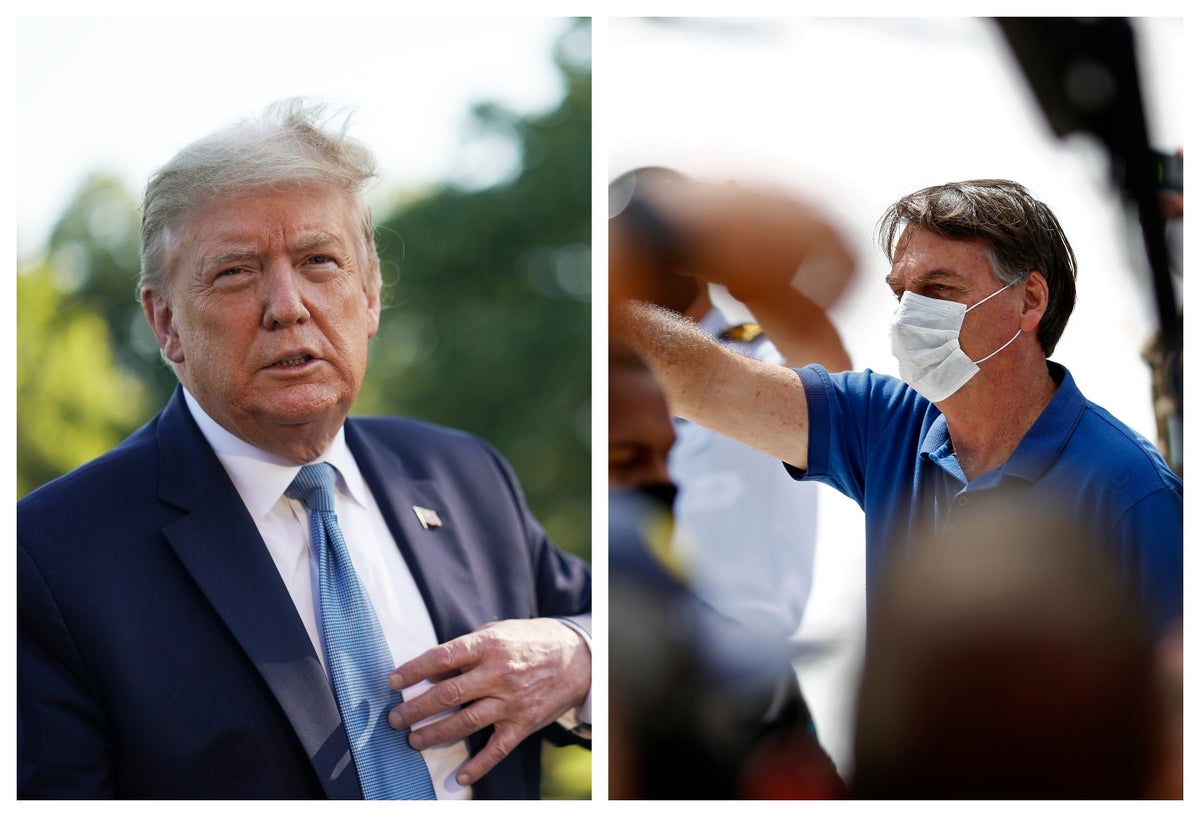El presidente Donald Trump se ha mantenido en la reactivación económica a como dé lugar y en ningún acto ha usado tapabocas, entre tanto, el mandatario brasileño Jair Bolsonaro ha sido mas desafiante y ha participado en aglomeraciones sin medir las consecuencias que puede traer esto para la propagación del virus, cuando la OMS ha insistido en el distanciamiento social.
