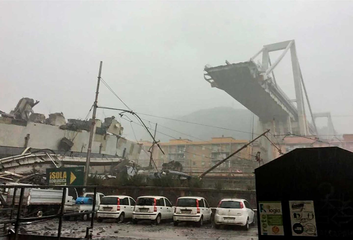 El siniestro ocurrió en el puente Morandi, de 1.182 metros de longitud y una altura de 90 metros, y del que se vino abajo un tramo de dos carriles de unos cien metros de longitud, sepultando bajo los escombros a varios vehículos.