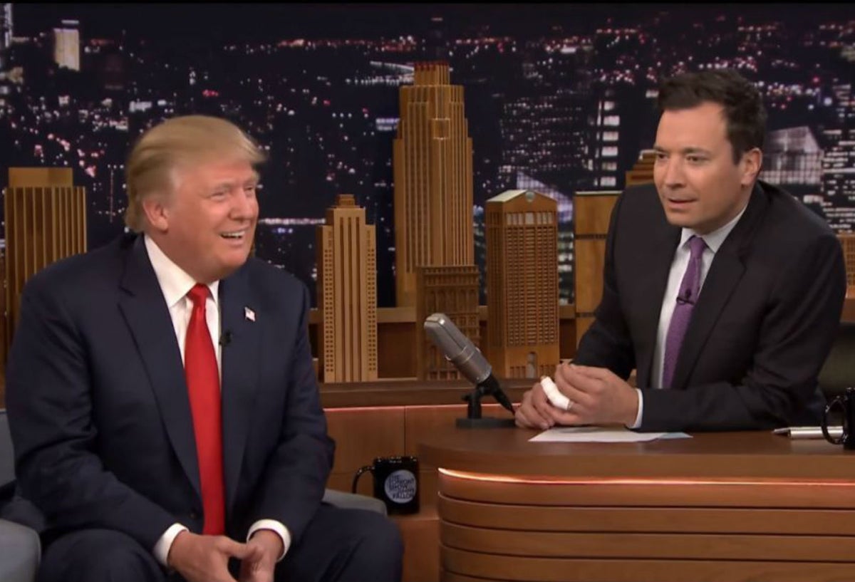 Fue en septiembre de 2016 que Donald Trump acudió al show de Jimmy Fallon quien le preguntó si podía despeinarlo, al principio el entonces candidato republicano realizó una mueca, pero luego accedió.
