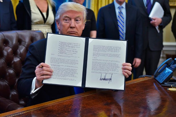 "Eso es una gran cosa", agregó el mandatario ante los periodistas. El presidente rubricó el documento un día después de firmar otra orden, con el fin de "proteger al país de la entrada de terroristas extranjeros", que suspende el acceso a Estados Unidos de todos los refugiados durante 120 días.