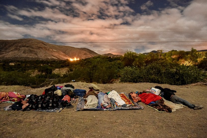 Venezolanos duermen en la vía Panamericana. Crédito: AFP