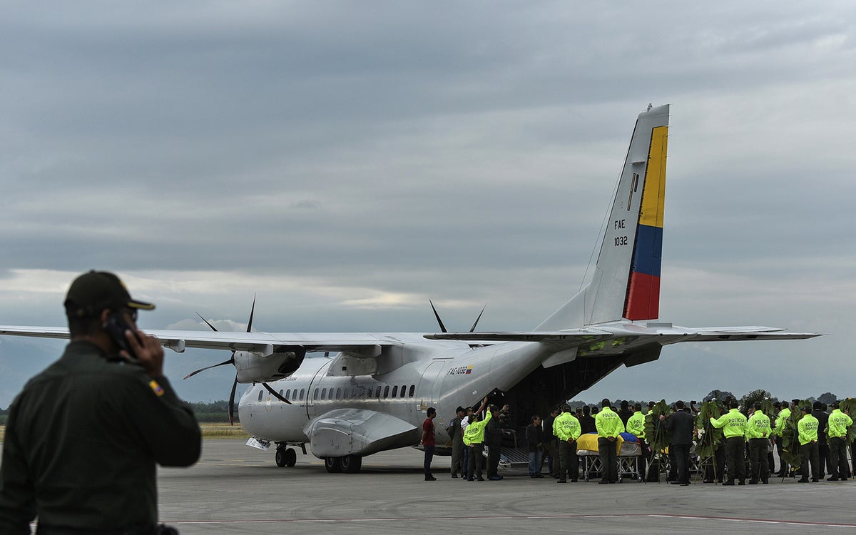 Imagen del traslado de los cuerpos de los periodistas ecuatorianos de El Comercio, también secuestrados por disidencias de las Farc. Crédito: AFP