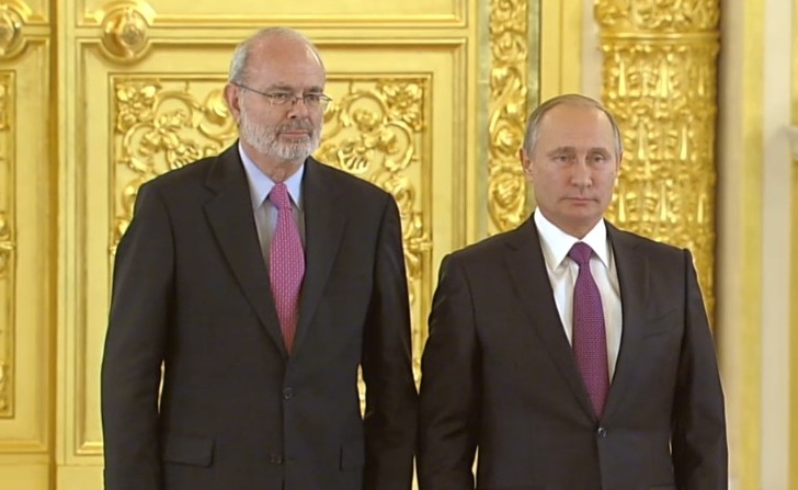 Embajador de Colombia en Rusia, Alfonso López Caballero, junto al presidente Vladimir Putin