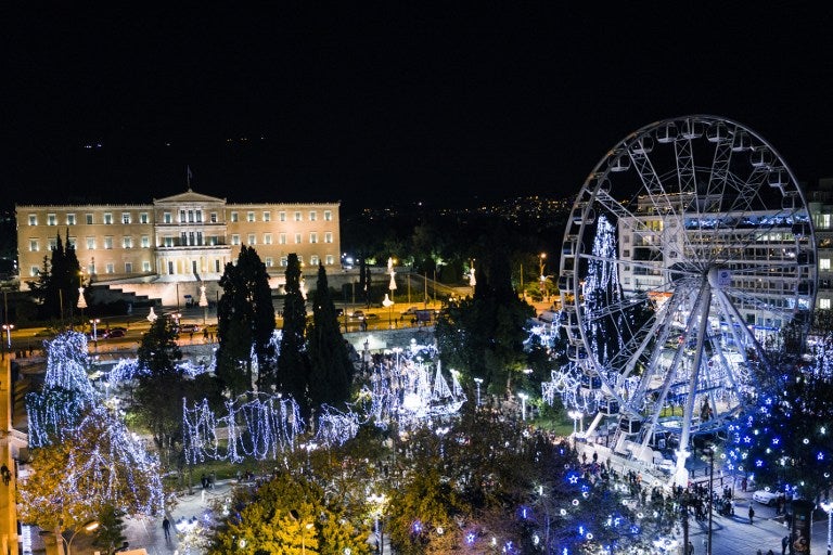 Los turistas se sacaban fotos cerca de un árbol de Navidad gigante en la plaza del Pesebre.