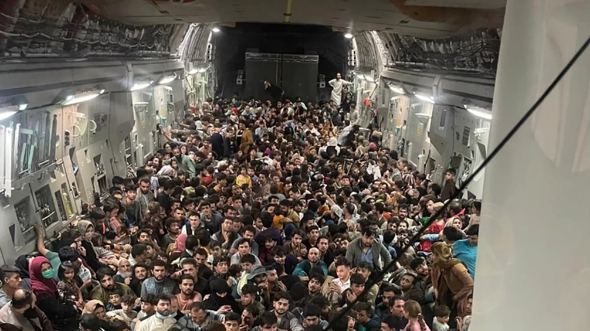 Histórica foto: Más de 600 afganos amontonados en un avión militar de EE.UU. para huir del país