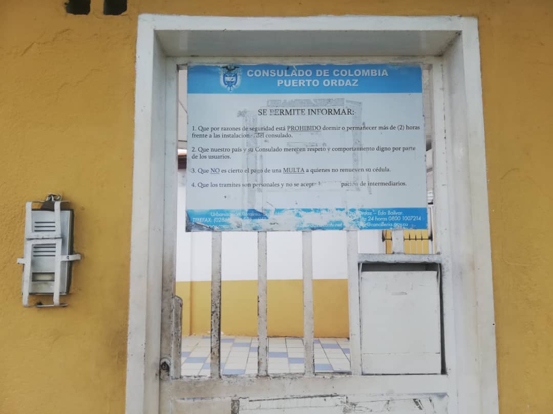 Dichas instalaciones se mantienen cerradas, sin presencia de personal de seguridad a su interior salvo una persona sin identificar, la que al parecer cuida de las instalaciones del consulado colombiano al sur del país vecino.