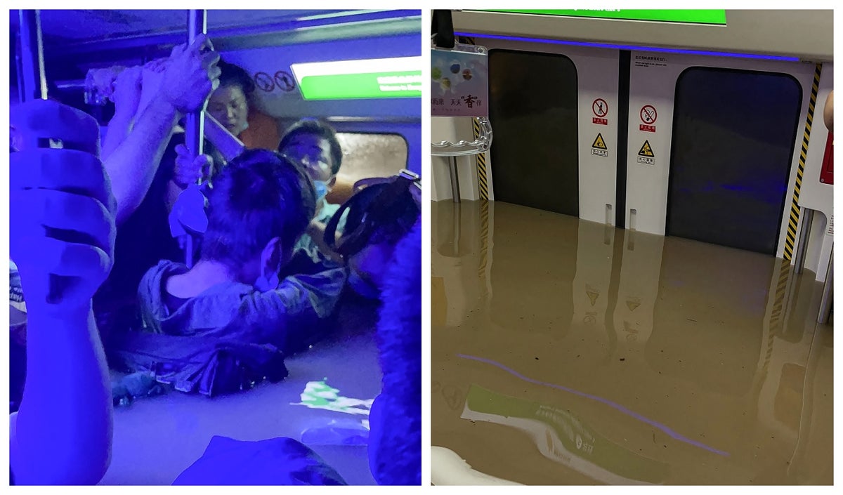 Imágenes difundidas en las redes sociales mostraban a los pasajeros del metro con el agua hasta el cuello en un vagón, aferrados a las asas.