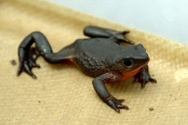Los sapos y los tritones palmeados, que forman parte de lista roja mundial de especies amenazadas, se acostumbraron a reproducirse en un charco situado cerca de la carretera.