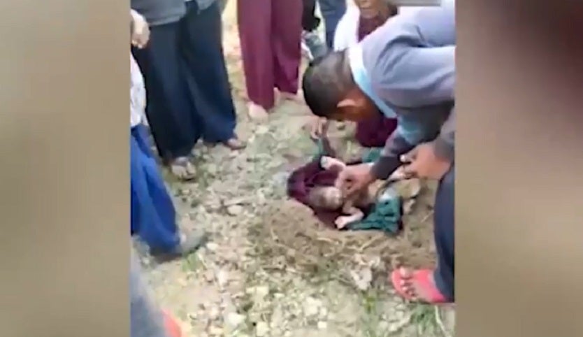 Entre varias personas cavaron con cuidado para sacar al menor de la tumba poco profunda. Al principio, el bebé parecía estar muerto, pero luego de que una mujer le limpiara su rostro se percataron de que aún estaba respirando.