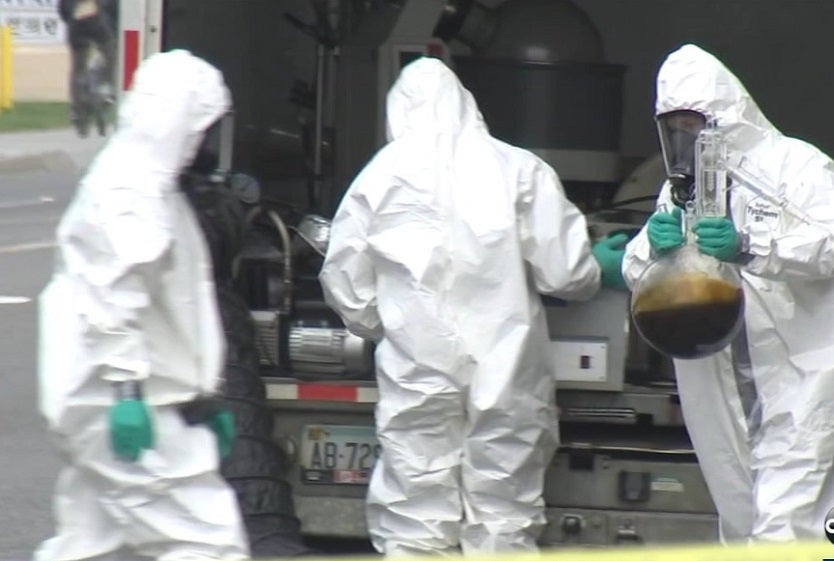 Personal del equipo de manejo de materiales peligrosos se presentaron en el lugar.