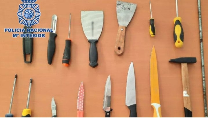 "En el lugar, ocultos bajo los coches y escondidos entre los arbustos, se encontraron armas blancas, destornilladores, adoquines, piedras y palos", detalló la policía.