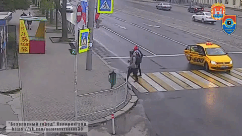 Cámaras de seguridad de una calle rusa captaron el momento en que el pasajero de un taxi se bajó del vehículo para golpear a una transeúnte.