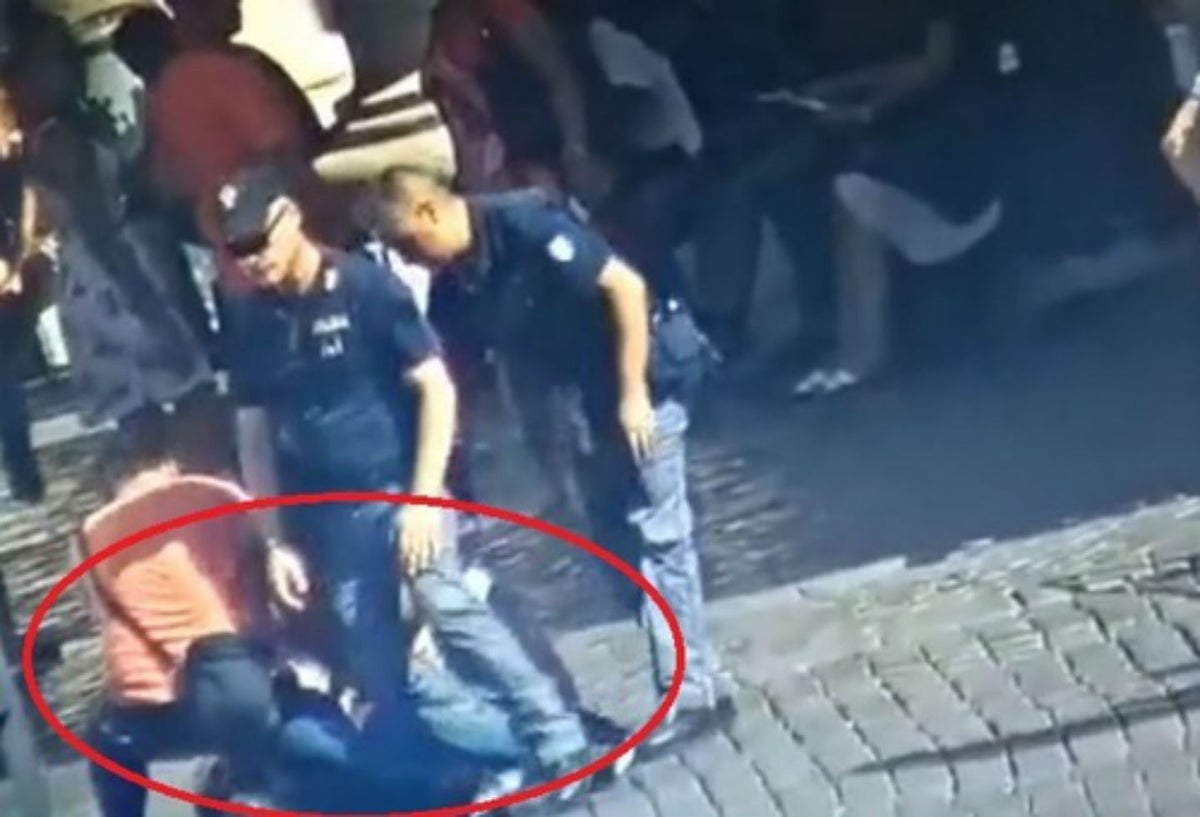Los dos policías de paisano intervinieron muy rápidamente para evitar preocupar a los turistas y peregrinos que continuaban pasando por delante como si no ocurriera nada.